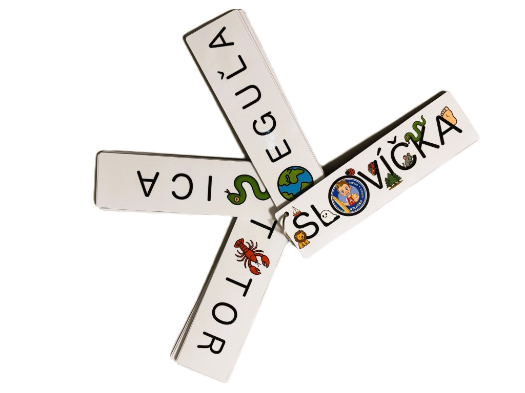 Naučné karty – SLOVÍČKA sú pomôcka, ktorá motivuje deti k čítaniu a rozvíja ich slovnú zásobu. Na kartách je časť slova nahradená obrázkom, vďaka čomu sa deti učia spájať písmená s významom, premýšľať nad súvislosťami a správne dopĺňať celé slová. Nižšie nájdete podrobný popis.